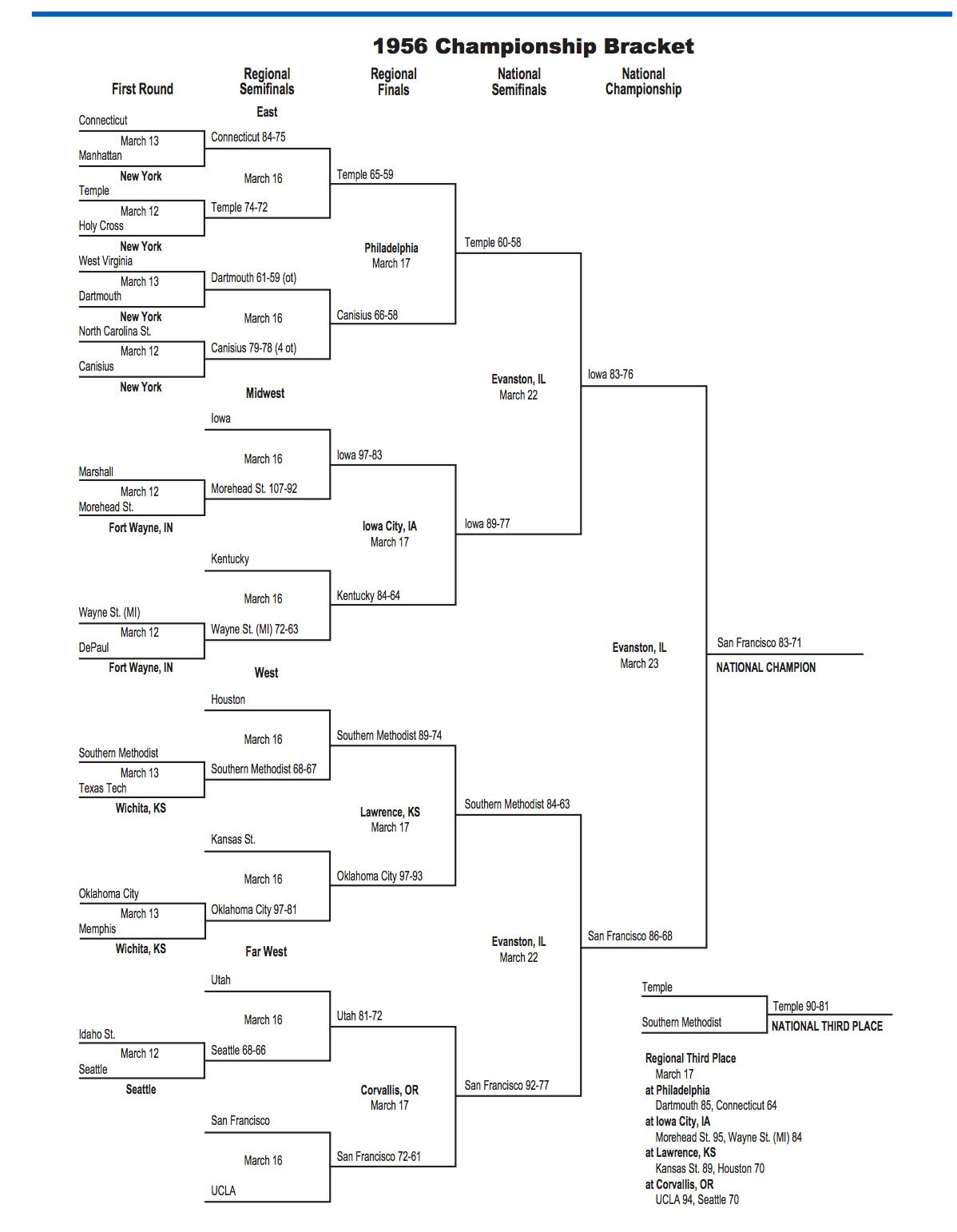 This is the 1956 NCAA tournament bracket