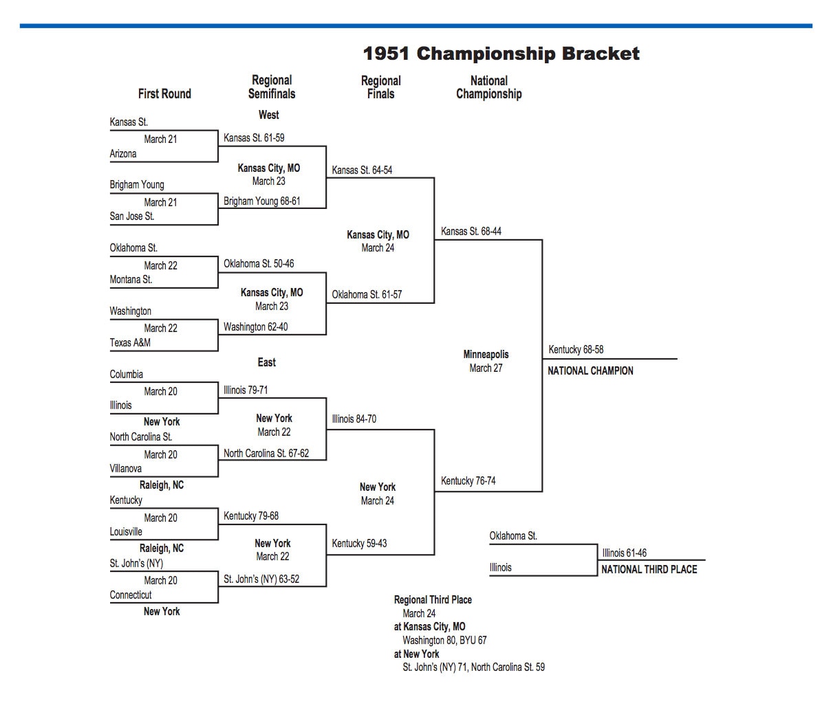 1951 NCAA tournament: Bracket, scores, stats, records