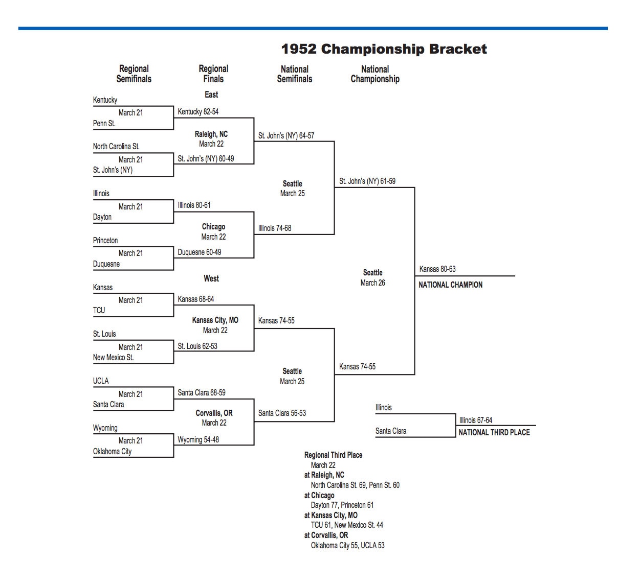 1952 NCAA tournament: Bracket, scores, stats, records