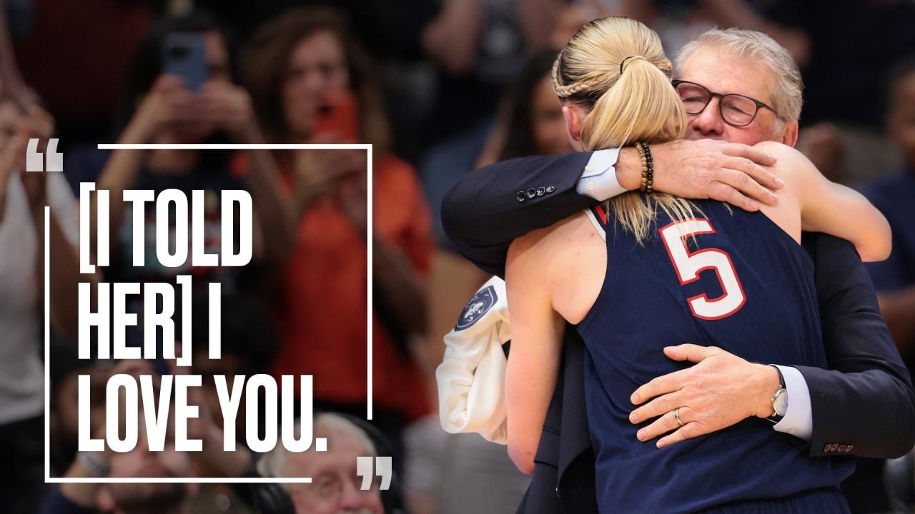 Emotional Geno Auriemma talks UConn's 12th title, Paige Bueckers hug