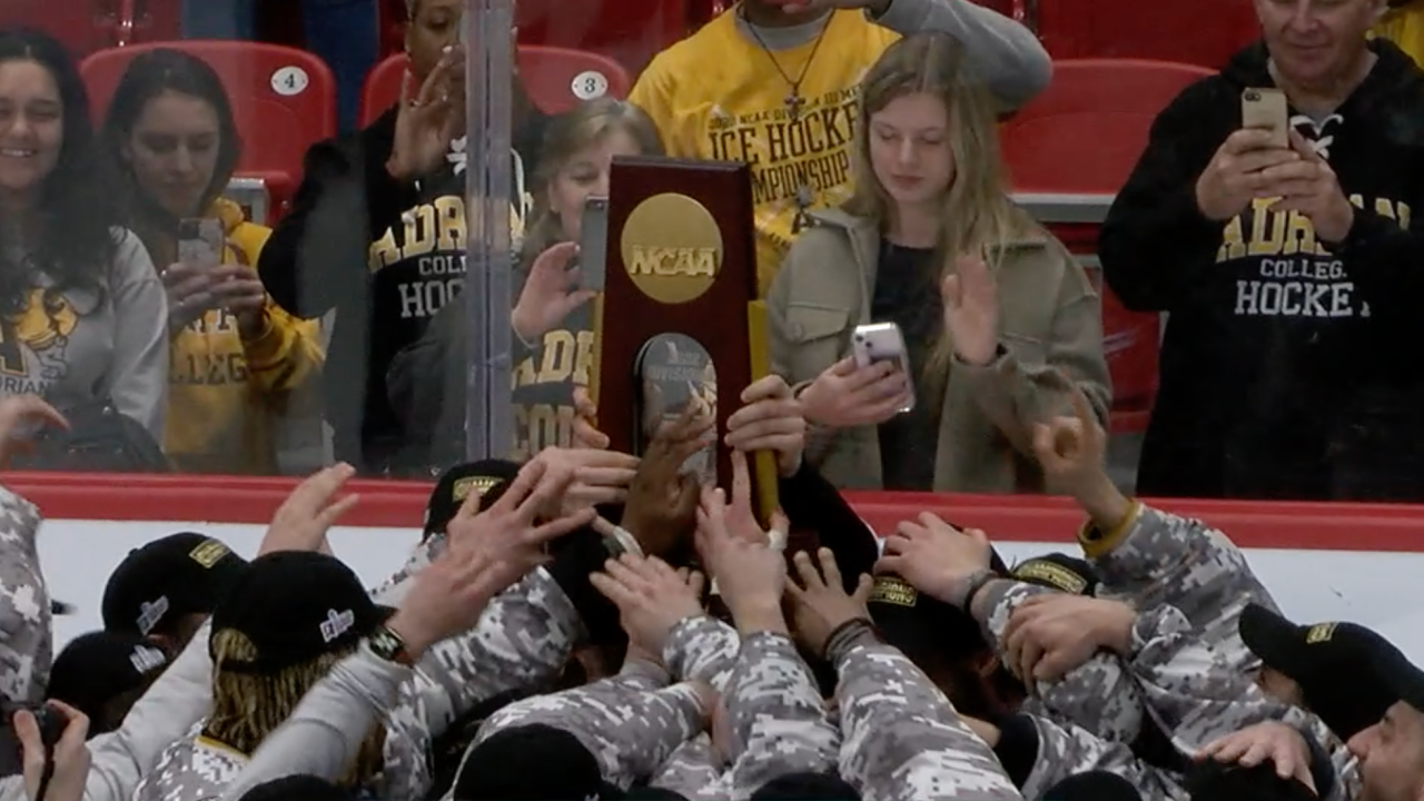 A three-goal first period carried Adrian to a 5-2 win over SUNY Geneseo in the national championship game. It's the first national championship for Adrian in its history.