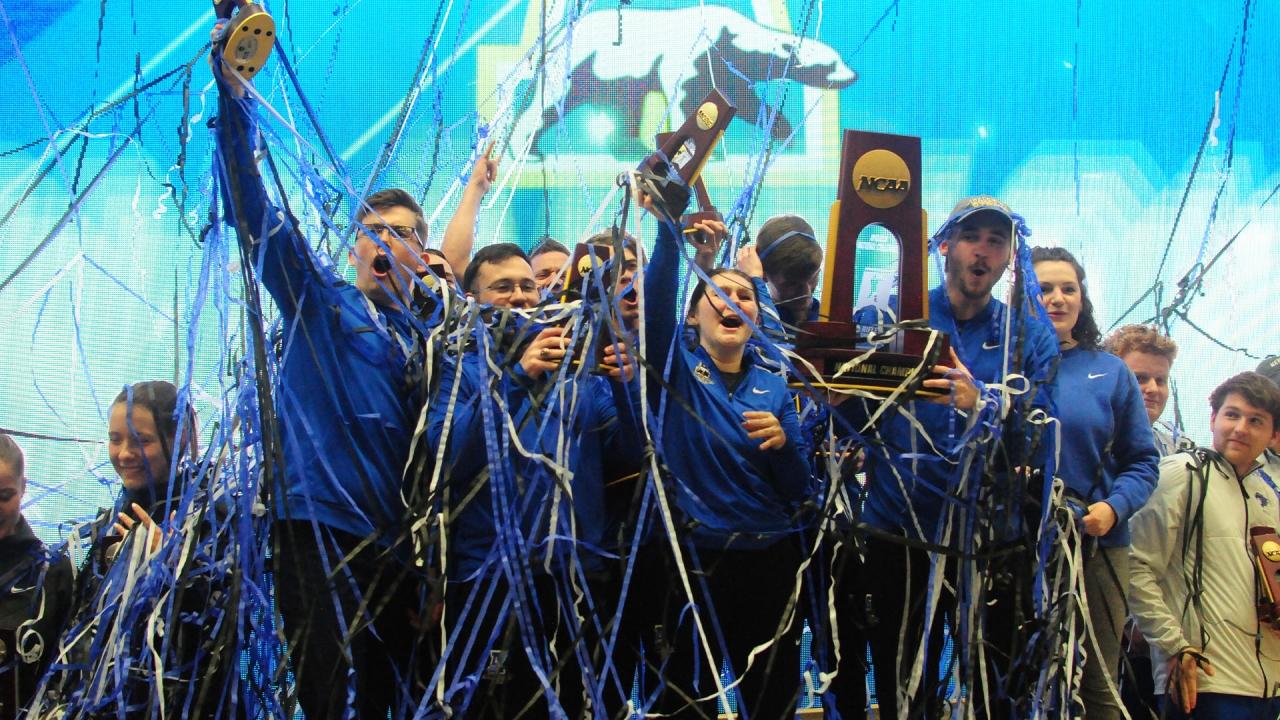 The Nanooks won the national championship Saturday in Akron, Ohio by totaling an aggregate score of 4,729. They dethroned two-time defending champ Kentucky, who tallied a score of 4,713.