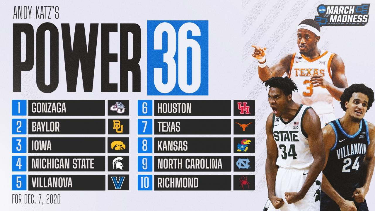 College basketball rankings: North Carolina, Texas jump in Andy Katz's Power 36 for Dec. 7