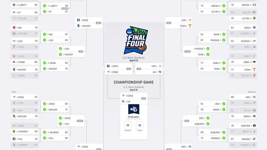 Here is the winning 2019 BCG bracket 2019 winner "mjbrewer" went 8-for-8 in picking the Elite Eight teams.