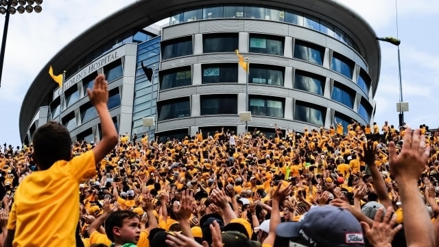 Everyone knows about "The Wave" at Iowa football games by now. Starting this year, Hawkeye fans take a moment right after the first quarter ends to turn and wave toward the new children's hospital located right next to Kinnick Stadium. Here's to hoping this tradition lasts many more seasons in Iowa City.
