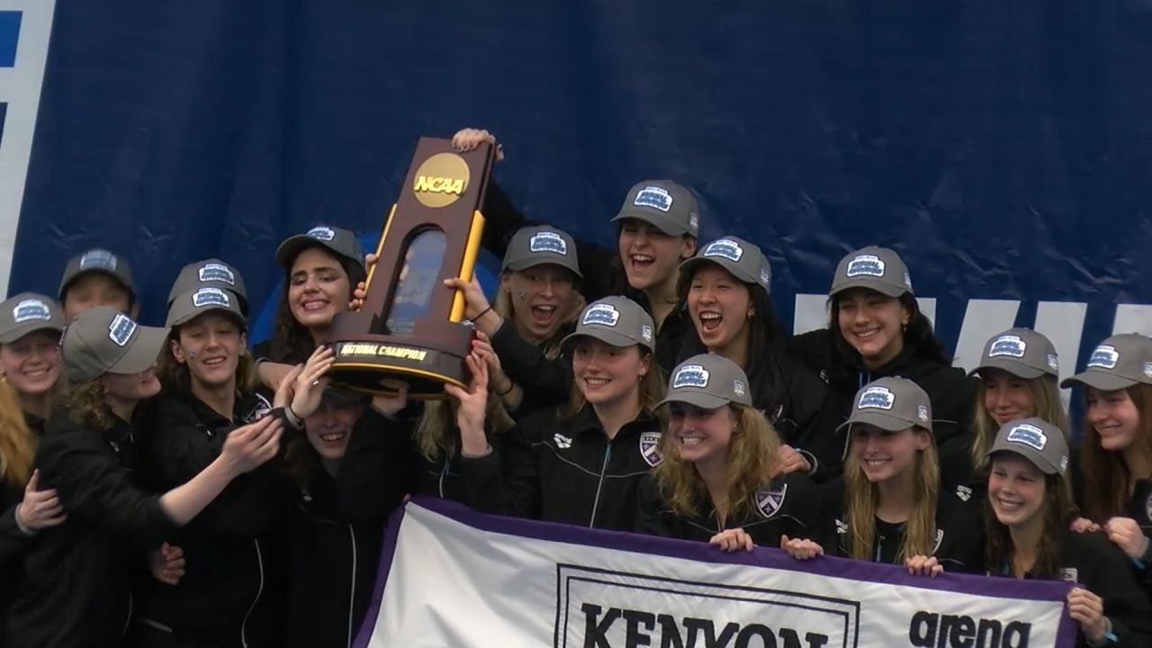 On the women's side, Kenyon won the 2024 DIII women's swimming and diving national championships for the second time in the past three years.